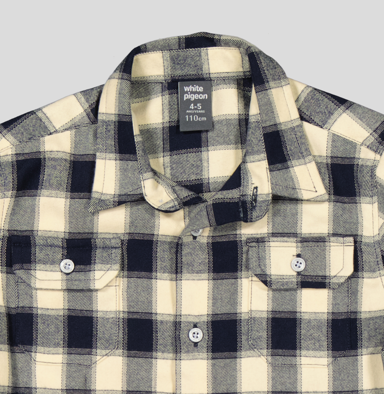 Les garçons utilisent cette chemise comme une veste à la mi-saison, avec ou sans manteau l’hiver venu. Portée sur un pull ou seule selon les envies. Confectionné en tissu 100 % coton , coupe droite, col chemise. 2 poches poitrine à revers pressionné, manches longues, poignets pressionnés. Ouverture pressionnée. Base arrondie.