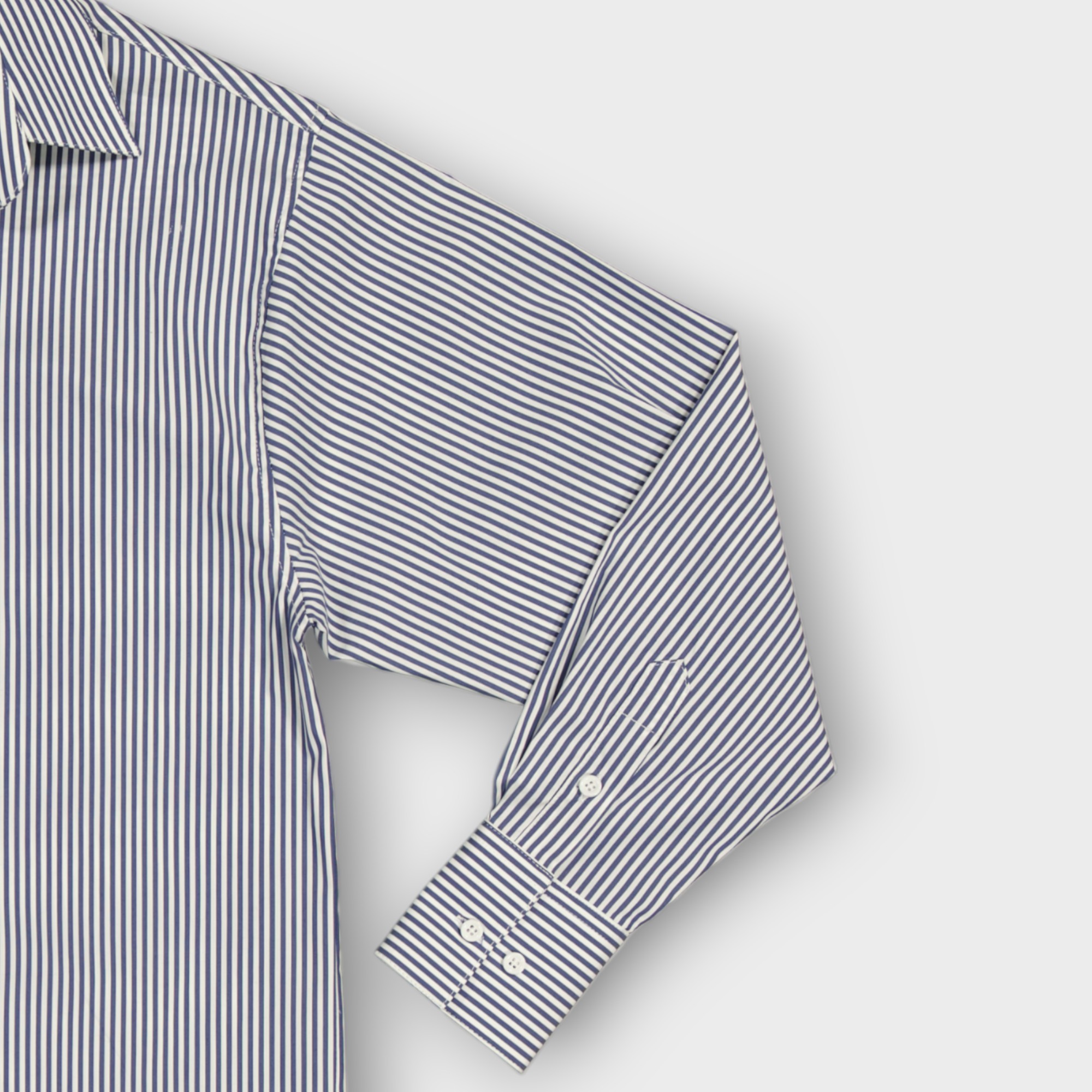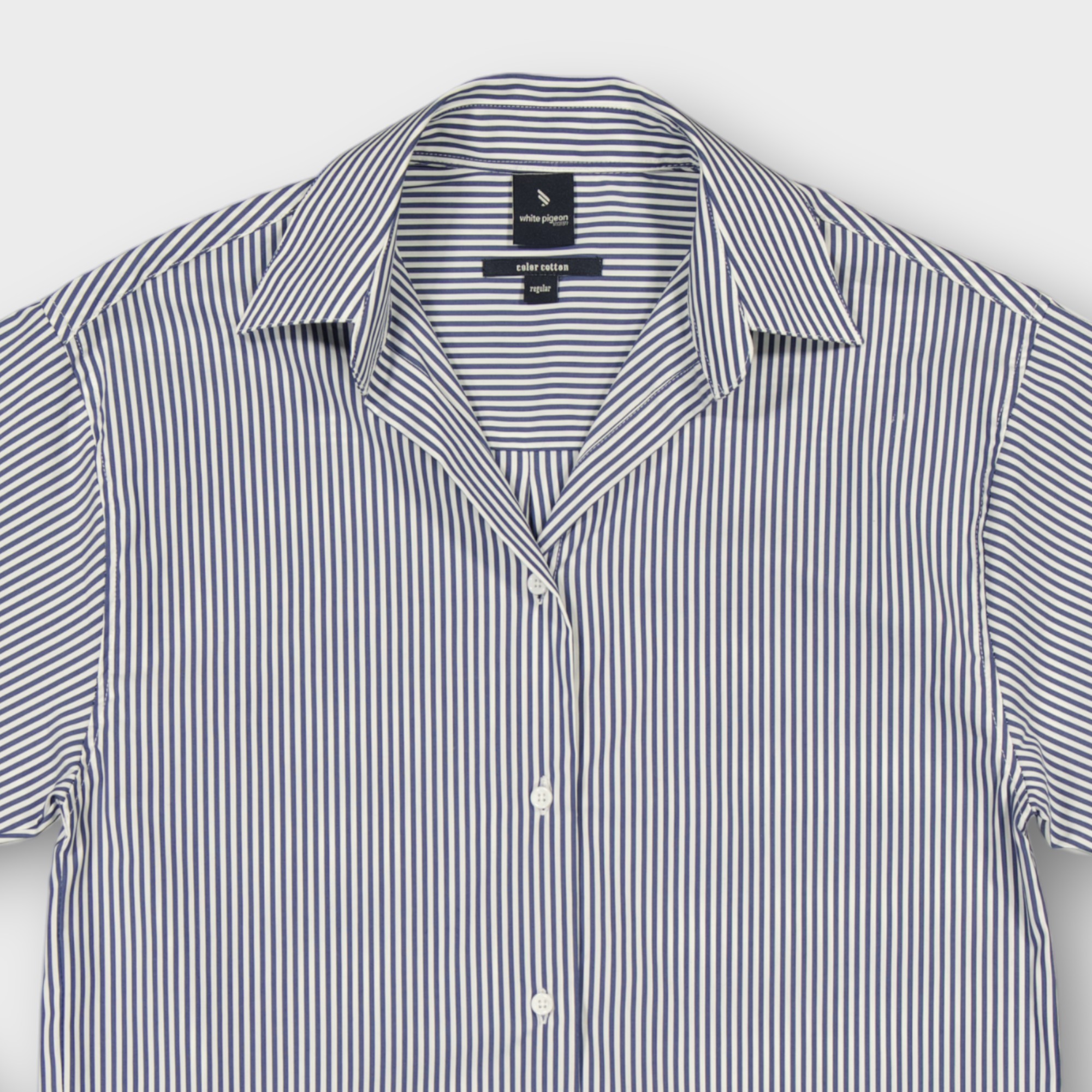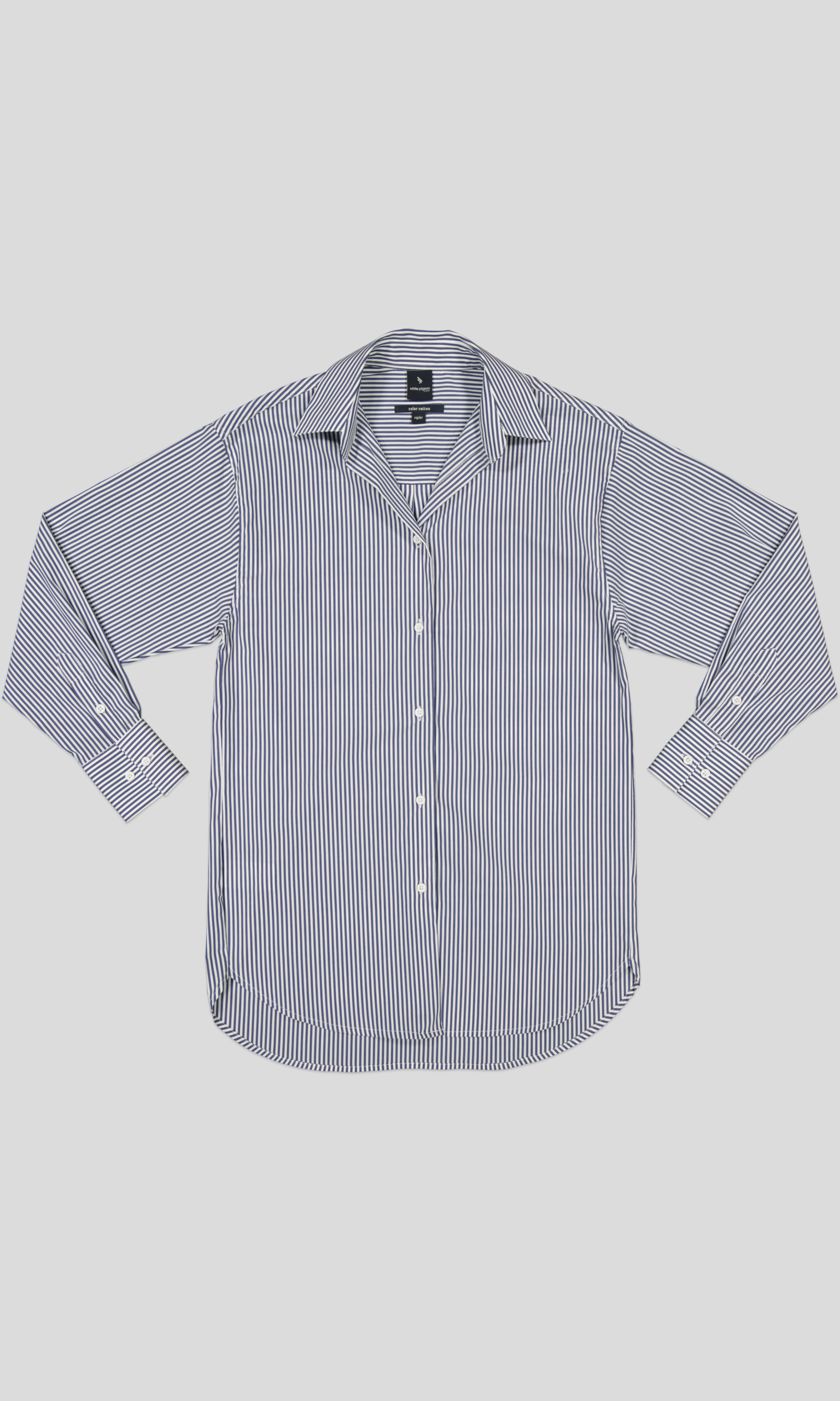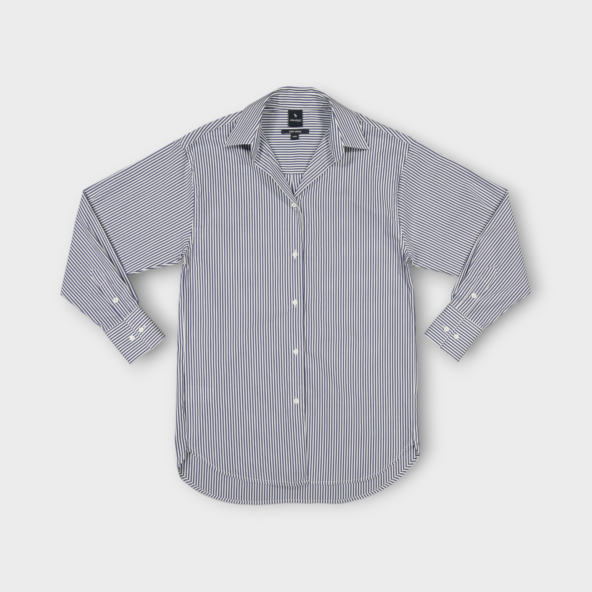 Cette chemise est une chemise regular fit rayée confectionnée en 100% coton pour femme présente des rayures fines verticale , possède un col chemise classique , une fermeture boutonnée sur le devant, des manches longues avec poignets boutonnés et une poche plaquée sur la poitrine.