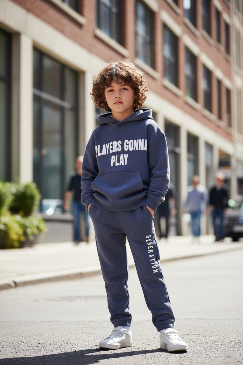Jogging garçon confectionné dans un tissu molleton 100 % coton respirant , doux et confortable ,parfait pour accompagner les enfants au quotidien, le haut à capuche est orné d’une sérigraphie moderne avec des messages ajoutant une touche tendance et positive au look ainsi que pour le pantalon assorti est doté d’une taille élastique pour un maintien confortable et une grande liberté de mouvement .