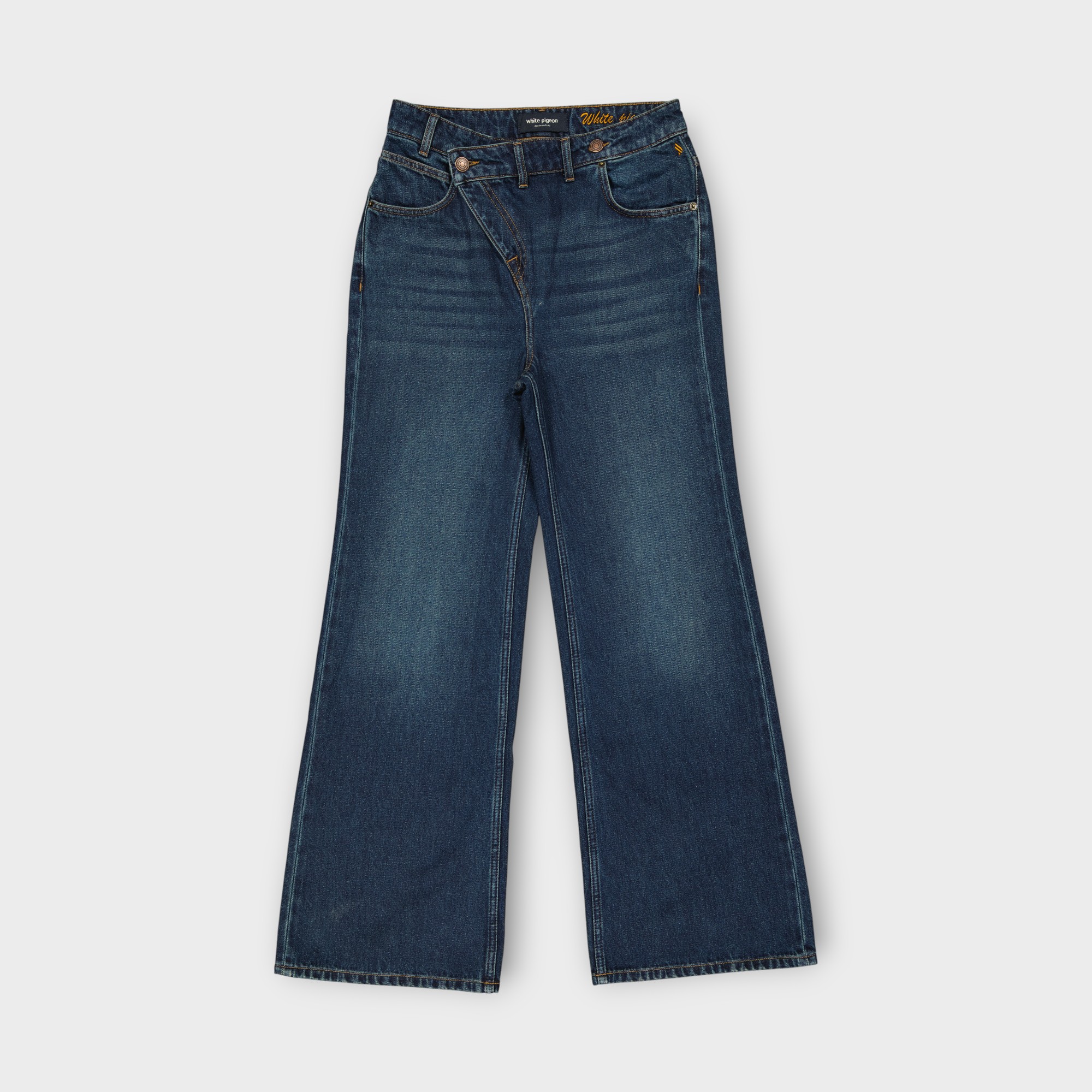 Ce jean Wide Leg fantaisie offrant une silhouette fluide et moderne ,ajusté au niveau de la taille , il s’évase progressivement pour un effet ample et élégant confectionné du tissu denim stretch extensible s’adapte aux formes du corps et garde son élasticité après lavage stone Wash, sublimé par une broderie raffinée du nom de la marque sur la ceinture, l’entrée de poche est délicatement ornée du logo brodé apportant une touche distinctive et sophistiquée ,on oublie pas le fonds de poches imprimé et la pose de boutons apporte un caractère et originalité au modèle.