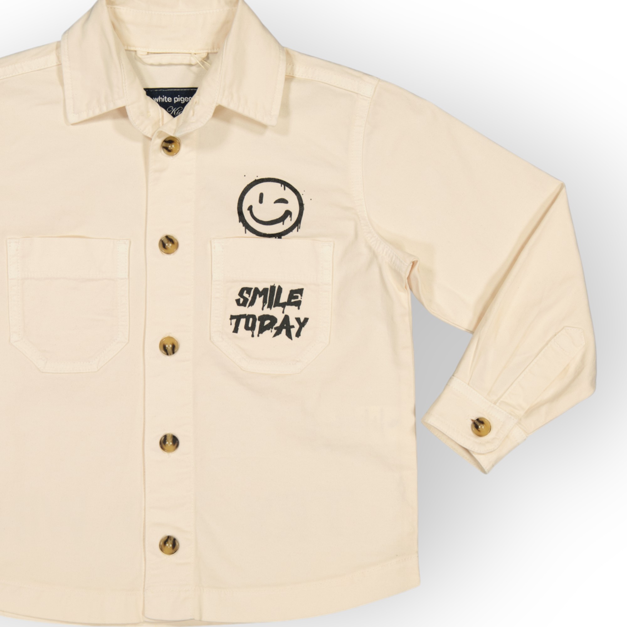 Surchemise à coupe légèrement over size conçue en coton élasthanne doux et respirant , elle présente un col classique , une fermeture boutonnée sur le devant et des poches poitrine plaquées, son originalité réside dans ses smileys imprimés apportent une touche fun , moderne et décontractée .un essentiel du style casual pour un look urbain et pratique pour votre enfant.