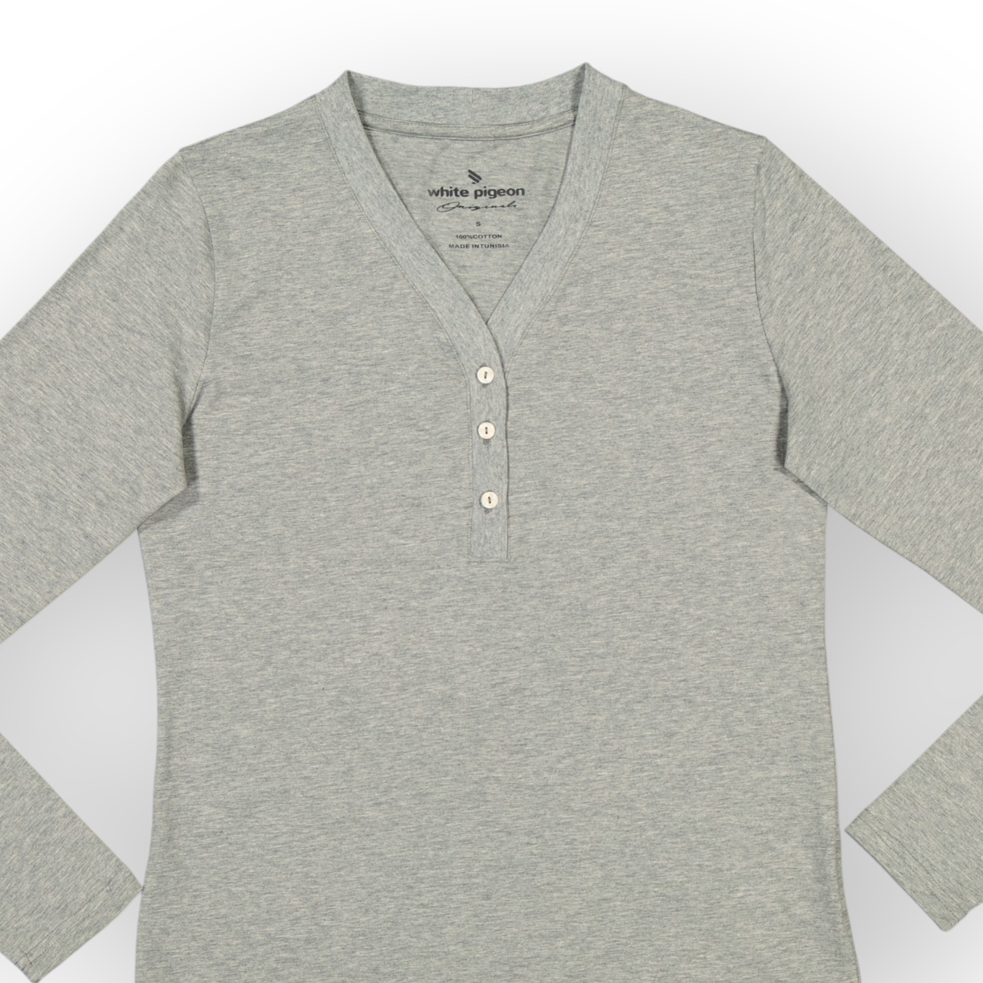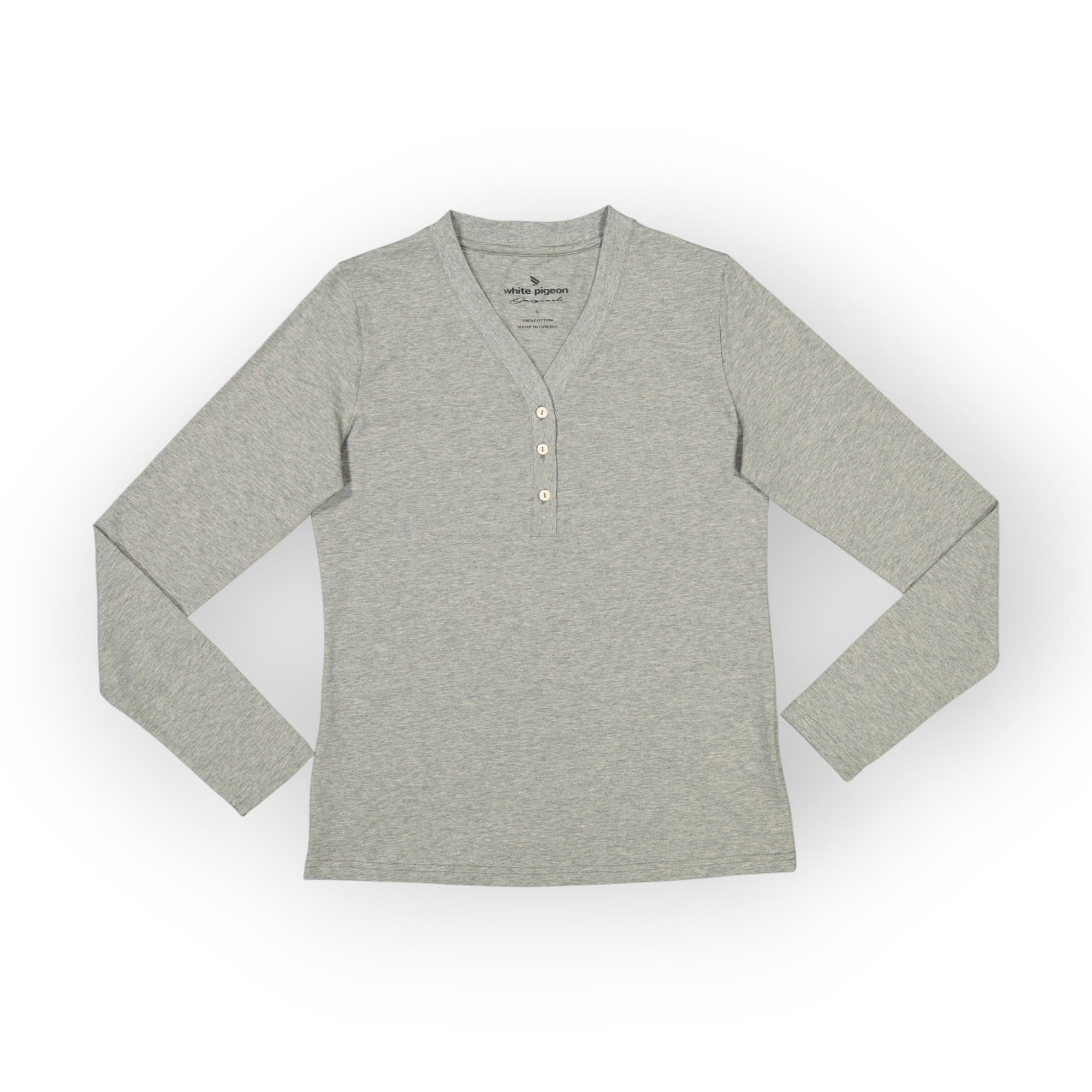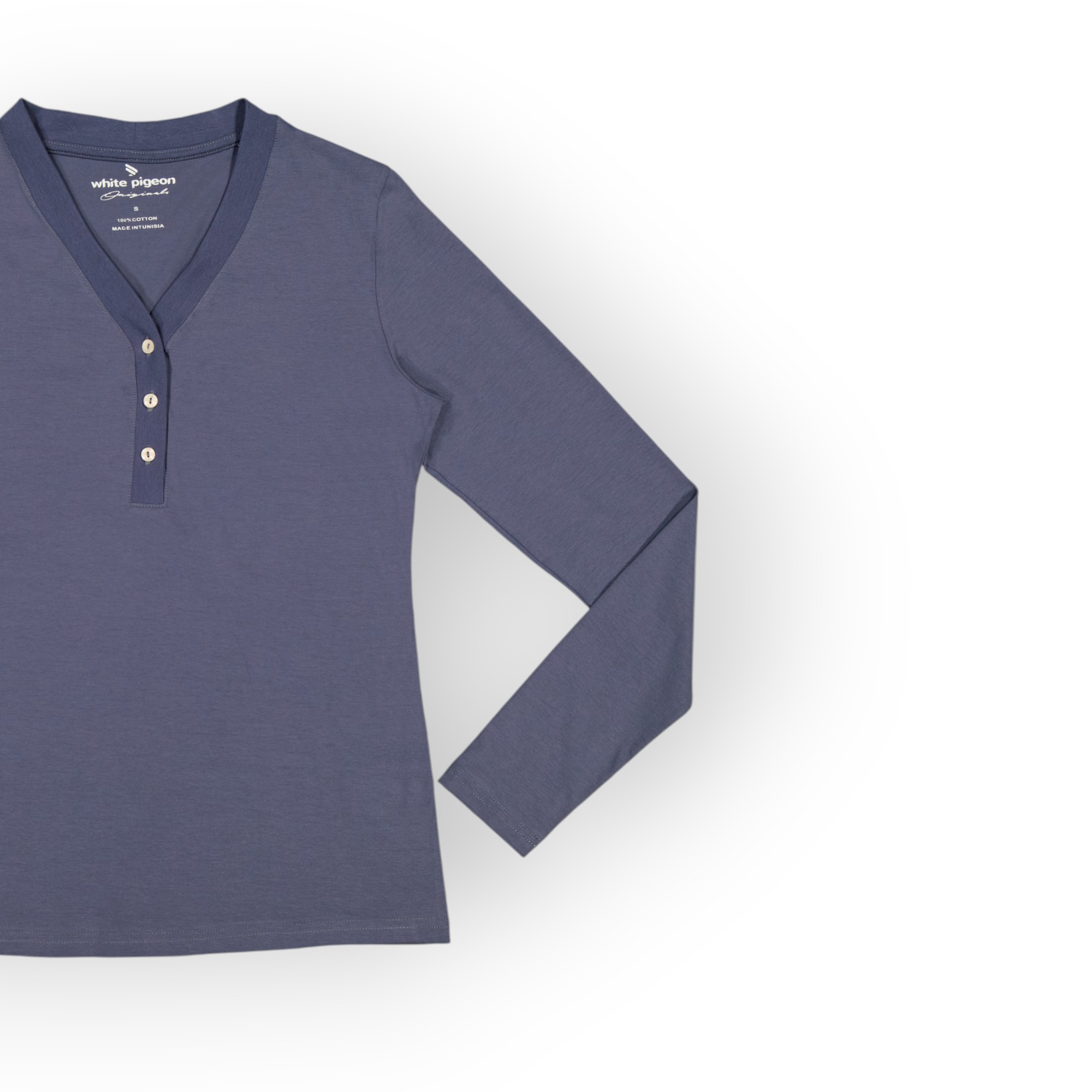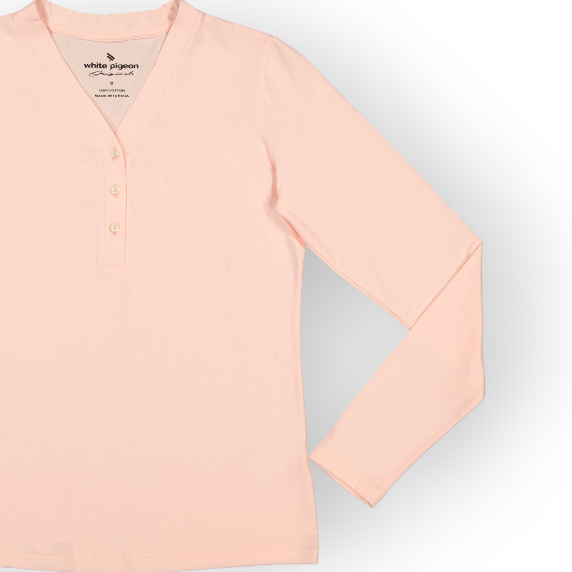 T SHIRT COL BOUTONNÉ MANCHE LONGUE FEMME