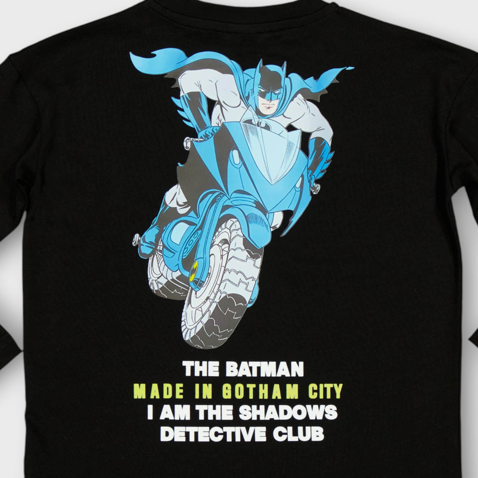 Plongez votre petit héros dans l’univers sombre de Gotham avec cet impressionnant t-shirt Batman à manches longues ! Arborant un design saisissant avec le logo Batman jaune et une inscription imposante, ce t-shirt confectionné en tissu jersey 100 % coton est un incontournable pour tout jeune fan du Chevalier Noir. Les manches longues offrent une protection et une chaleur optimales pendant les mois les plus froids sans entraver les mouvements, tandis que le col rond classique lui confère un style intemporel.
