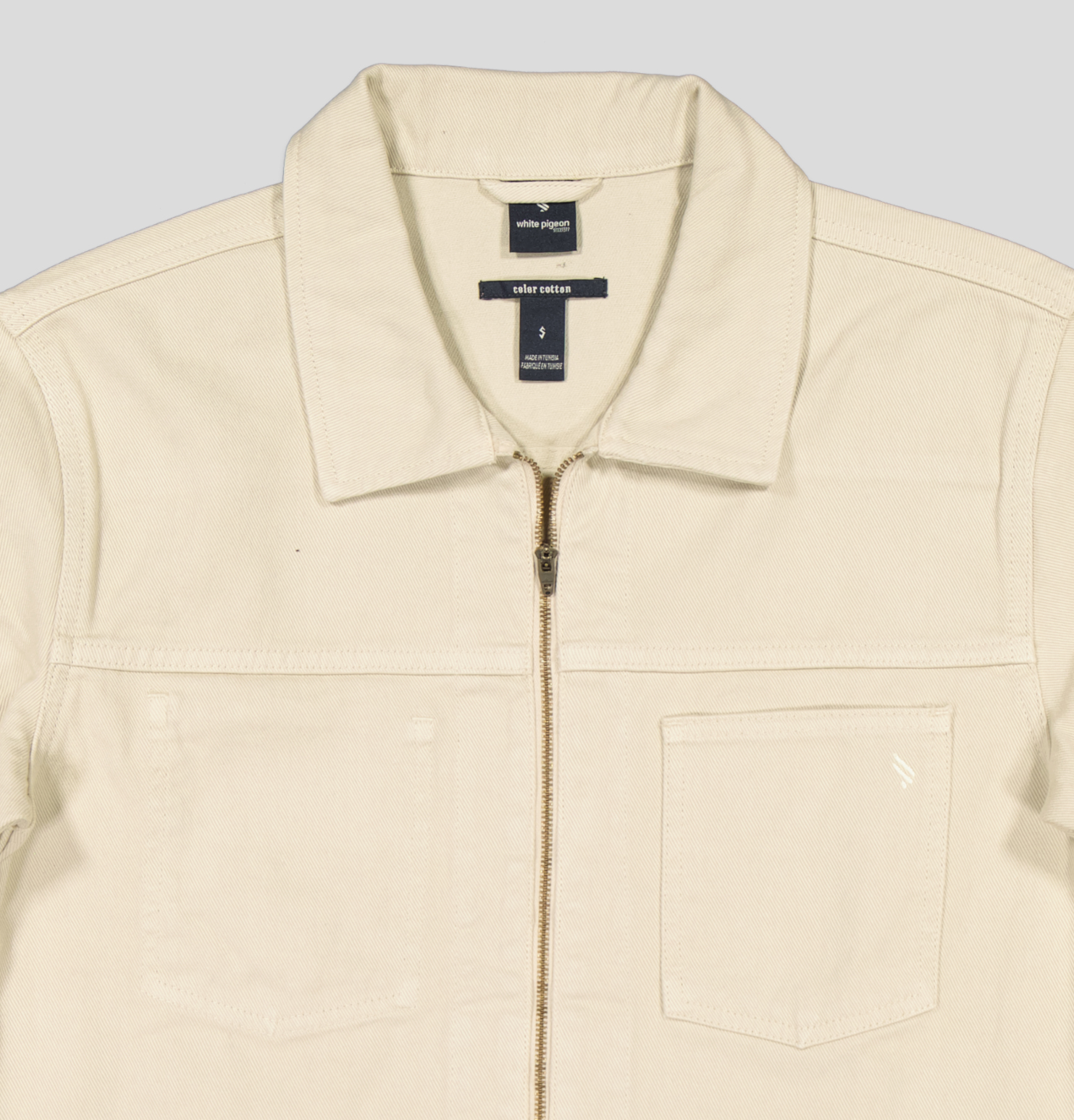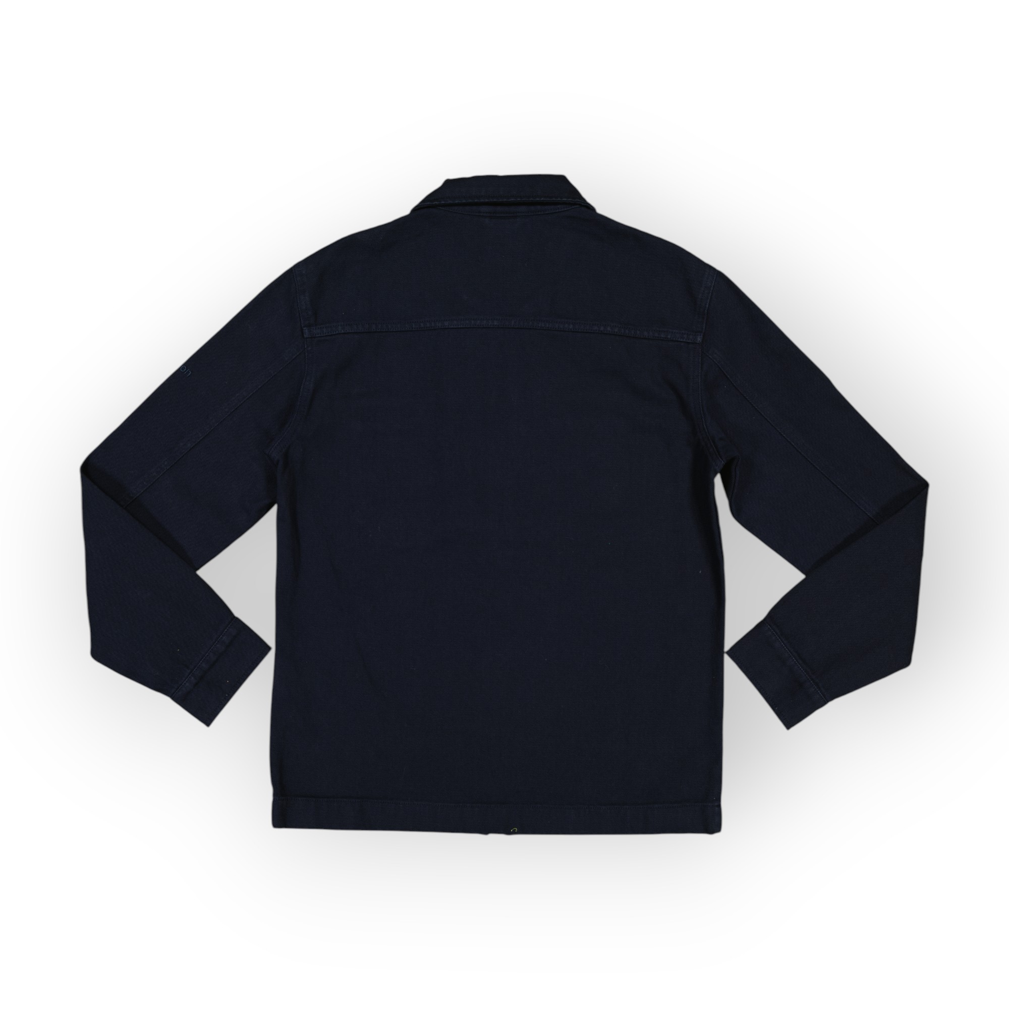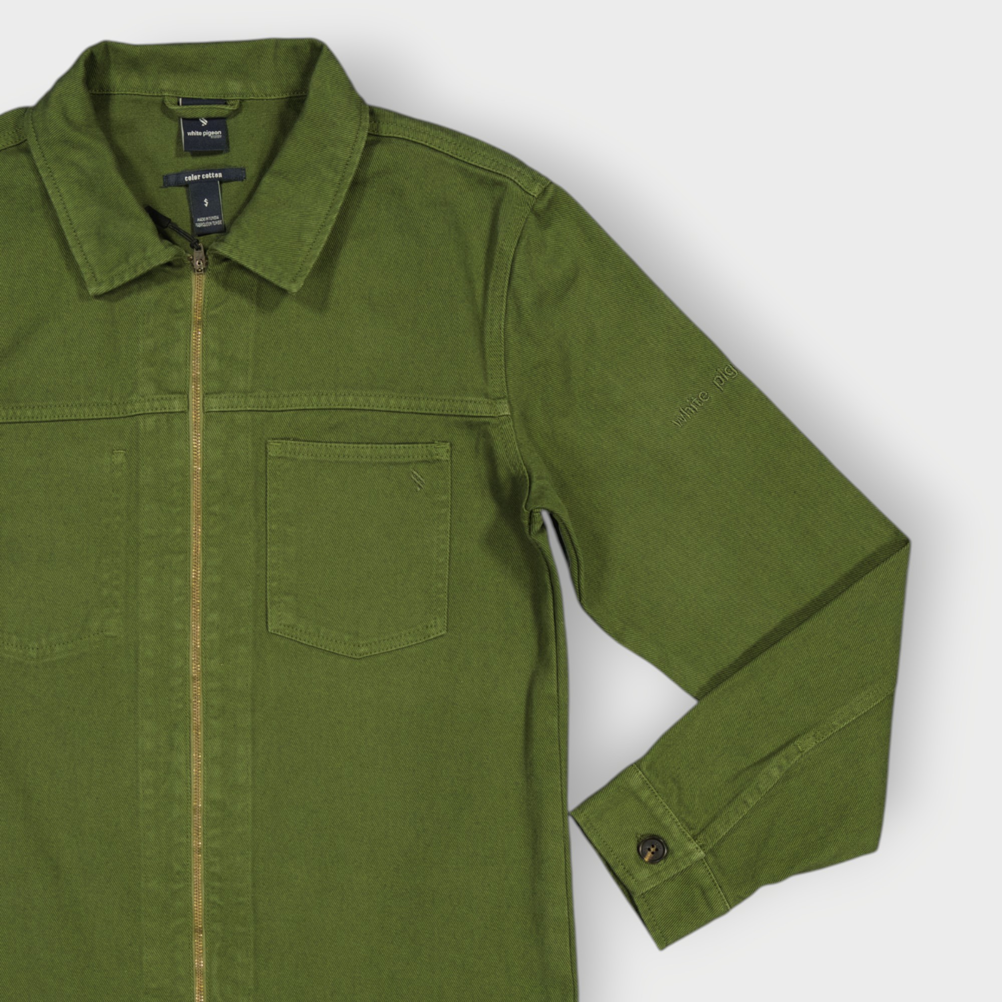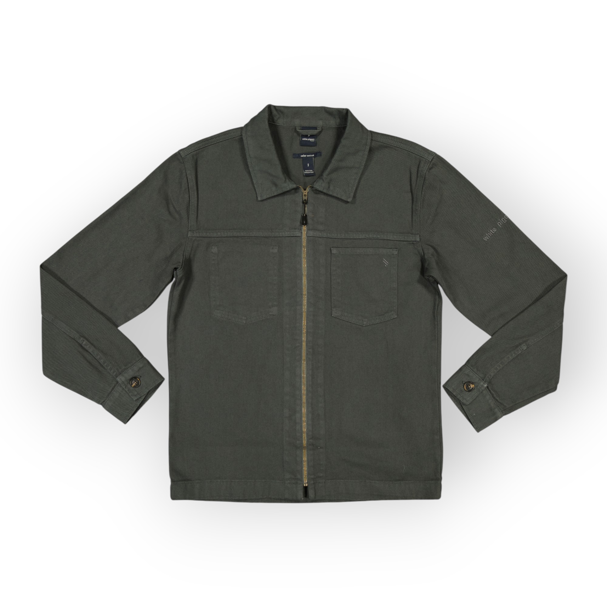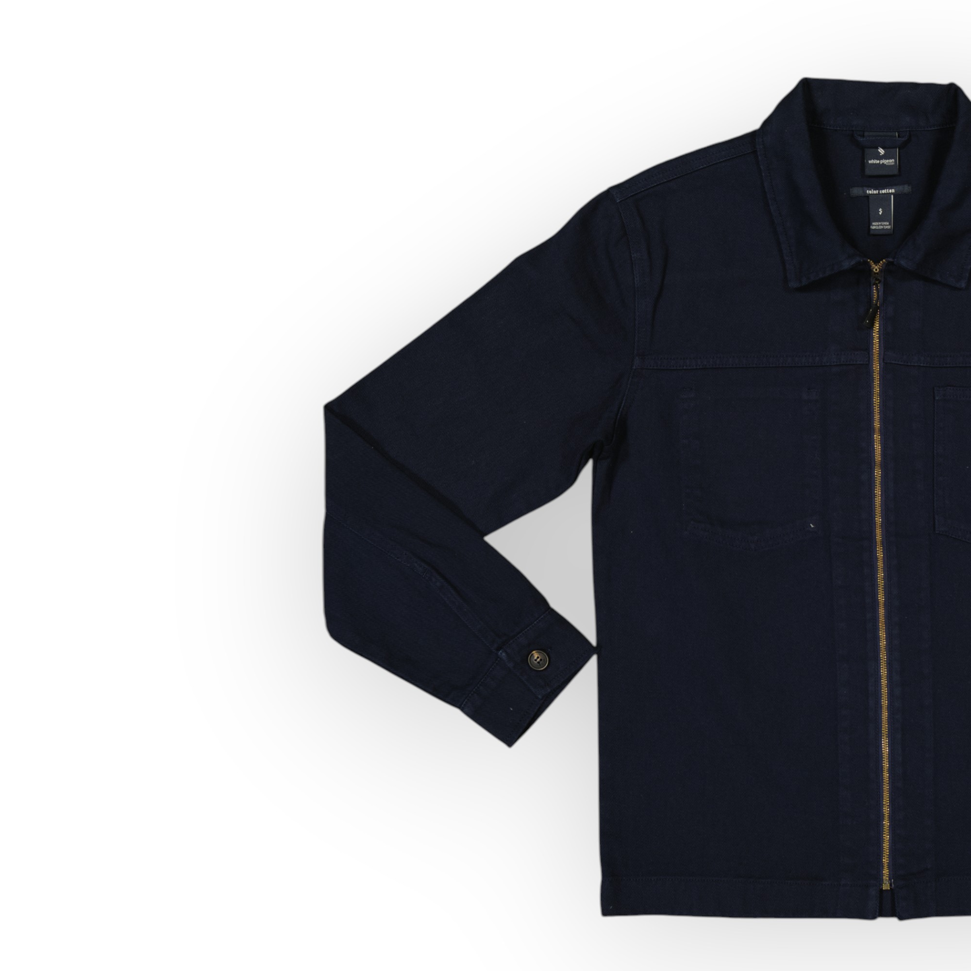 Surchemise coupe décontractée confectionnée avec tissu coton stretch. Col à revers et manches longues avec poignets à bouton. Détail de poche plaquée sur la poitrine. Effet délavé. Fermeture frontale avec fermeture éclair.